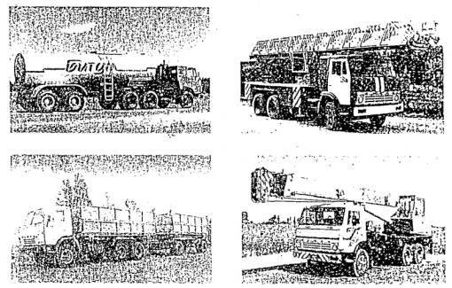 Автоцистерна транспортная 56216-011 (шасси КАМАЗ-53229 6´4)Автоцистерна предназначена для транспортирования и кратковременного хранения светлых нефтепродуктов плотностью не более 830 кг/куб.м и рассчитана на эксплуатацию в тех же дорожно-климатических условиях что и базовое шасси. Спецификация Модель.....................................................АЦ-56216-011 Номинальная вместимость цистерны, л.............17000 Форма поперечного сечения цистерны..........чемодан Количество отсеков в цистерне, шт............................1 Снаряженная масса, кг............................................9500 Полная масса, кг...................................................21000 Время заполнения цистерны при помощи насоса, мин...........................................15 Время слива из цистерны, мин.: -при помощи насоса..................................................45 -самотеком..................................................................65 Максимальная глубина самовсасывания, м...........4.5 Максимальная производительность насосной установки, л/мин.....................................360 Привод насоса..............от коробки отбора мощности Габаритные размеры, мм.: - длина......................................................................8900 - ширина...................................................................2500 - высота....................................................................3200 Максимальная скорость, км/ч...................................80 Базовое шасси: Модель..................................................КАМАЗ-53229 Двигатель: Модель.......................................................7403 (740.11) Тип....................................дизельный с турбонаддувом Максимальная мощность, л.с. (кВт), при 2600 (2200) об/мин..................240 (176), 240 (176) Изготовитель: ОАО «ГРАЗ» п/о Грабово