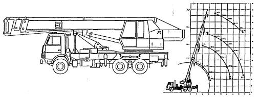Автомобильный кран КС-35714 К (шасси КАМАЗ-53213 6´4)Автомобильный кран КС-35714 К, грузоподъемностью 16 т смонтирован на шасси КАМАЗ-53213. Привод механизмов крана - гидравлический от насоса, приводимого в действие двигателем шасси. Гидропривод обеспечивает легкость и простоту управления краном, плавность работы механизмов, широкий диапазон рабочих скоростей, совмещение крановых операций. Стрела телескопическая трехсекционная. Выдвижение секции гидроцилиндром и полиспастом. Для увеличения подстрелового пространства по особому заказу поставляется легкий решетчатый удлинитель стрелы (гусек). Микропроцессорный ограничитель грузоподъемности с цифровой индикацией информации позволяет следить за степенью загрузки крана, длиной и вылетом стрелы, высотой подъема оголовка стрелы; показывает фактическую величину груза на крюке и максимальную грузоподъемность на данном вылете, а также автоматически по заданным координатам ограничивает зону действия крана при работе в стесненных условиях или вблизи линии электропередачи. Установленная в ограничителе телеметрическая память («Черный ящик») фиксирует рабочие параметры, а также степень нагрузки крана в течение всего срока службы крана. Спецификация Модель..................................................................КС-35714 К Грузоподъемность, т............................................................16 Грузовой момент, тм............................................................48 Вылет, м..........................................................................1,9-17 Высота подъема, м: с основной стрелой......................................................9,1-18,4 с гуськом.............................................................................25,0 Длина стрелы, м.................................................................8-18 Длина гуська, м.......................................................................7 Скорость подъема (опускания) груза, м/мин....................7,5 Максимальная скорость подъема (опускания) пустого крюка и грузов до 4,5 т, м/мин..............................15 Скорость посадки, м/мин....................................................0,2 Частота вращения, мин-1.....................................................2,5 Скорость передвижения, км/час.........................................60 Габаритные размеры в транспортном положении, мм: длина................................................................................10000 ширина...............................................................................2500 высота.................................................................................3400 Полна масса с основной стрелой, т ..............................18,05 Распределение нагрузки на дорогу, тс: через шины передних колес.............................................4,19 через шины колес тележки.............................................13,86 Базовое шасси: Модель...............................................................КАМАЗ-53213 Двигатель: Модель .................................................................7403 (740.11) Тип...............................................дизельный с турбонаддувом Максимальная мощность, л.с.(кВт), при 2600 (2200) об/мин.............................260 (191), 240 (176) Изготовитель: ОАО «Автокран» г.Иваново