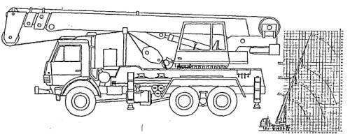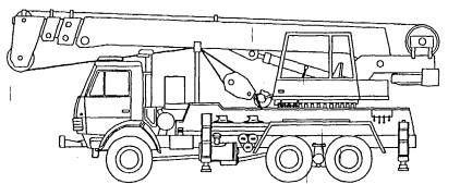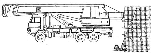 Автокран КС-45717 К-1 (шасси КАМАЗ-55111 6´4)Автомобильный кран КС-45717К-1, грузоподъемностью 25 т смонтирован на шасси КАМАЗ-55111. Привод механизмов крана - гидравлический от насоса, приводимого в действие двигателем шасси. Гидропривод обеспечивает легкость и простоту управления краном, плавность работы механизмов, широкий диапазон рабочих скоростей, совмещение крановых операций. Стрела телескопическая трехсекционная. Выдвижение секций гидроцилиндром и полиспастами. Для увеличения подстрелового пространства по особому заказу поставляется легкий решетчатый удлинитель стрелы (гусек). Микропроцессорный ограничитель грузоподъемности с цифровой индикацией информации позволяет следить за степенью загрузки крана, длиной и вылетом стрелы; показывает фактическую величину груза на крюке и максимальную грузоподъемность на данном вылете, а также автоматически по заданным координатам ограничивает зону действия крана при работе в стесненных условиях или вблизи линии электропередачи. Установленная в ограничителе телеметрическая память («Черный ящик») фиксирует рабочие параметры, а также степень нагрузки крана в течение всего срока службы крана. Спецификация Модель............................................................КС-45717 К-1 Грузоподъемность, т.........................................................25 Грузовой момент, тм.........................................................75 Вылет, м......................................................................2-19,7 Высота подъема, м с основной стрелой...................................................10-21,3 с гуськом.........................................................................28,2 Длина стрелы, м..............................................................9-21 Длина гуська, м ...................................................................7 Скорость подъема (опускания) груза, м/мин.................6,1 Максимальная скорость подъема (опускания) пустого крюка и грузов до 4,5 т, м/мин.........................12,2 Скорость посадки, м/мин..................................................0,2 Частота вращения, мин-1....................................................1,7 Скорость передвижения, км/час........................................60 Габаритные размеры в транспортом положении, мм: длина ´ ширина ´ высота..........................11000´2500´3600 Полная масса с основной стрелой, т................................20,2 Распределение нагрузки на дорогу, тс: через шины передних колес...............................................4,28 через шины колес тележки...............................................15,92 Базовое шасси: Модель................................................................КАМАЗ-55111 Двигатель: Модель..................................................................7403 (740.11) Тип...............................................дизельный с турбонаддувом Максимальная мощность, л.с.(кВт), при 2600 (2200) об/мин..............................260 (191), 240 (176) Изготовитель: ОАО "Автокран" г. Иваново