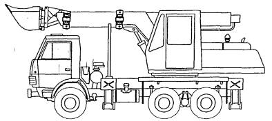 Каналопромывочная машина КО-512 (шасси КАМАЗ-53213 6´4)Машина предназначена для очистки ливневых канализационных труб от осадков и засоров. Специальное оборудование состоит из цистерны, водяного насоса с приводом, барабана с намотанным рукавом, гидравлической системы и вспомогательного оборудования. Насос и барабан размещены в отапливаемых отсеках, что позволяет использовать машины круглогодично. К машине прилагается набор размывочных головок, которые применяются в зависимости от диаметра очищаемых труб и степени их засоренности. Размывочная головка под действием реактивной силы движется вперёд по трубе и размывает осадок водяными струями высокого давления. Спецификация Модель...........................................................КО-512 Вместимость цистерны, м3................................9,05 Диаметр очищаемых труб, мм..................150-1000 Длина рукава высокого давления, м.................100 Максимальное давление воды подаваемое на размывочную головку, МПа................................16 Полная масса, кг..............................................20500 Габаритные размеры, мм Длина..................................................................7750 Ширина...............................................................2500 Высота.................................................................3100 Максимальная скорость, км/ч..............................90 Базовое шасси; Модель.............................................КАМАЗ-53213 Двигатель: Модель................................................7403 (740.11) Тип...............................дизельный с турбонаддувом Максимальная мощность, л.с.(кВт), при 2600 (2200) об/мин..............260 (191 ),240 (176) Изготовитель: ОАО «КОММАШ» г.Арзамас