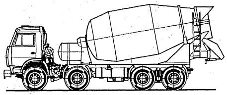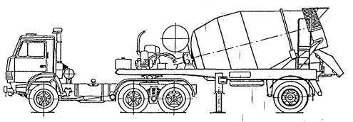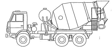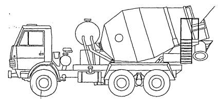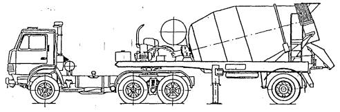 Автобетоносмеситель СБ-172-1 (шасси КАМАЗ-55111 6´4)Автобетоносмеситель является современным средством для доставки отдозированных сухих компонентов бетонной смеси, приготовления ее в пути следования или по прибытию на строительный объект, а также для доставки готовой бетонной смеси и выдаче ее потребителю. Автобетоносмеситель предназначен для эксплуатации в любых климатических условиях, включая тропические. Автобетоносмеситель представляет собой реверсный бетоносмеситель, установленный на надежном и экономичном шасси КАМАЗ-55111. Автобетоносмеситель СБ-172-1 имеет гидравлический привод смесительного барабана от автономного дизельного двигателя, надежен при эксплуатации на равнине и в горных условиях. Конструкция смесительного барабана унифицирована с конструкцией европейских фирм. По конструктивному исполнению данный автобетоносмеситель полностью соответствует европейским стандартам. Спецификация Модель........................................................................СБ-172-1 Полезный объем смесительного барабана, м3.....................6 Геометрический объем смесительного барабана, м3........10 Частота вращения смесительного барабана, мин...........0-18 Масса, кг технологического оборудования..................................3900 снаряженная................................................................103 80 полная............................................................................22200 Продолжительность перемешивания, мин...............15-20 Высота загрузки, мм....................................................3600 Распределение полной массы автобетоносмесителя, кг, не более на переднюю ось...........................................................5500 на заднюю ось.............................................................16700 Вместимость бака для воды, л.......................................450 Максимальная скорость движения автобетоносмесителя при полной нагрузке на прямом горизонтальном участке дорога, км/ч..............60 Габаритные размеры, мм.........................7600´2500´3600 Тип привода смесительного барабана....................гидромеханическая передача от автономного двигателя Д-144-60 Мощность установленная, кВт................................198 Темп выгрузки при подвижности бетонной смеси 3-4 см, м3/мин..................................1 Базовое шасси: Модель....................................................КАМАЗ-55111 Двигатель: Модель...............................................................7403 (740.11) Тип............................................дизельный с турбонаддувом Максимальная мощность, л.с.(кВт), при 2600 (2200) об/мин..........................260 (191), 240 (176) Изготовитель: ОАО «Туймазинский завод автобетоновозов» г.Туймазы