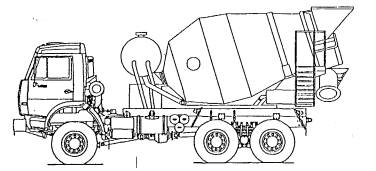 Автобетоносмеситель СБ-159Б (шасси КАМАЗ-55111 6´4)Автобетоносмеситель является современным средством для доставки отдозированных сухих компонентов бетонной смеси, приготовления ее в пути следования или по прибытию на строительный объект, а также для доставки готовой бетонной смеси и выдаче ее потребителю. Автобетоносмеситель предназначен для эксплуатации в любых климатических условиях, включая тропические. Автобетоносмеситель Представляют собой реверсный бетоносмеситель, установленный на надежном и экономичном шасси КАМАЗ-55111. Автобетоносмеситель СБ-159Б - более экономичная модель из серии автобетоносмесителей. Для привода смесительного барабана используется гидромеханическая передача, изготовленная по лицензии западной фирмы "Зауэр", с отбором мощности от двигателя шасси. Рекомендуется для эксплуатации в равнинных местностях. Спецификация Модель.....................................................................СБ-159Б Полезный объем смесительного барабана, м3......................5 Геометрический объем смесительного барабана, м3..........8 Частота вращения смесительного барабана, мин.........0...20 Масса, кг технологического оборудования.................................3150 снаряженная..................................................................9680 полная...........................................................................18900 Продолжительность перемешивания, мин................15..20 Высота загрузки, мм....................................................3600 Распределение полной массы автобетоносмесителя , кг, не более на переднюю ось..........................................................4350 на заднюю ось.............................................................14550 Вместимость бака для воды, л......................................450 Максимальная скорость движения автобетоносмесителя при полной нагрузке на прямом горизонтальном участке дороги, км/ч.......60 Габаритные размеры, мм........................7600´2500´3600 Тип привода смесительного барабана........................гидромеханическая передача от двигателя базового шасси Мощность установленная, кВт.....................................161 Темп выгрузки при подвижности бетонной смеси 3-4 см, м3/мин......................................1 Базовое шасси: Модель.....................................................КАМАЗ-55111 Двигатель: Модель...................................................................7403 (740.11) Тип................................................дизельный с турбонаддувом Максимальная мощность, л.с.(кВт), при 2600 (2200) об/мин.............................260 (191), 240 (176) Изготовитель: ОАО «Туймазинский завод автобетоновозов» г.Туймазы