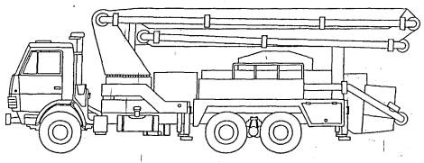 Бетононасос СБ-170-1 (шасси КАМАЗ-53213 6´4)Автобетононасос предназначен для приема свежеприготовленной бетонной смеси от специализированных бетонотранспортных средств и транспортирования ее к месту укладки с помощью бетонораспределительной стрелы. При использовании стационарного бетоновода высота подачи может быть увеличена до 80 метров по вертикали. Применяется при возведении зданий и сооружений из монолитного бетона или железобетона. Автобетононасос эксплуатируется при температуре от -5°С до +40°С. В качестве базового шасси применяется падежный и экономичный КАМАЗ-53213. Спецификация Модель....................................................................СБ-170-1 Максимальная подача на выходе из распределительного устройства, м3/час..........................65 Высота подачи бетона с помощью бетонораспределительной стрелы, м................................22 Подвижность перекачиваемой бетонной смеси (осадка стандартного конуса), см......................6...12 Тип привода.................................................гидравлический Установленная мощность привода, кВт (л.с.).....95 (119,2) Диаметр бетоновода (внутренний), мм..........................125 Объем загрузочной воронки, м3.......................................0,6 Высота загрузки, мм ......................................................1450 Поворот стрелы, град. в вертикальной плоскости...............................................90-3 в горизонтальной плоскости........................................355+5 Скорость передвижения, км/час ........................................60 Габаритные размеры, м...................................................10000´2500´3800 Масса снаряженного автобетононасоса, кг.........................................16500 Распределение массы, кг: на переднюю ось.................................................4500 на заднюю тележку...........................................12000 Базовое шасси: Модель....................................................КАМАЗ-53213 Двигатель: Модель............................................................7403 (740.11) Тип........................................дизельный с турбонаддувом Максимальная мощность, л.с.(кВт), при 2600 (2200) об/мин...........................260 (191), 240 (176) Изготовитель: ОАО «Туймазинский завод автобетоновозов» г.Туймазы