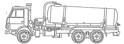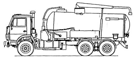 Машина илососная КО-530 (шасси КАМАЗ-53229 6´4)Машина илососная КО-530 предназначена для вакуумной очистки колодцев, ливневой и канализационной сетей от ила и транспортировки его к месту выгрузки. Специальное оборудование илососной машины состоит из цистерны, вакуум-нагнетательной системы, включающей в себя водяной вакуум-насос и четырехходовой кран; водяных баков и плунжерного насоса высокого давления, трансмиссии, гидропривода, пневмосистемы и электрооборудования. Дополнительное оборудование машины включает в себя комплект всасывающих рукавов с насадками, размывочный пистолет с комплектом насадок и размывочное устройство. Подъем цистерны, открывание крышки и подъем стрелы манипулятора осуществляется гидроцилиндрами. В цистерне илососа вакуумным насосом создается разряжение или давление. Оператор, манипулируя стрелой всасывающей трубы, производит забор ила из колодца в иловый отсек цистерны. Уплотнённый ил размывается струями воды, которые создает плунжерный насос высокого давления. Для этой цели на машине установлены дополнительные баки с водой. Выгрузка ила осуществляется подъемом цистерны. Процесс выгрузки сопровождается размывом ила струями воды. Спецификация Модель...............................................................КО-530 Вместимость цистерны, м3......................................9,5 Глубина очищаемого колодца, м ...........................4-6 Макс, разряжение в цистерне, МПа....................0,095 Производительность: вакуум - насоса, м3/ч ...............................................720 плунжерного насоса высокого давления, м3/ч...........................................2,2 Масса загружаемых материалов, кг...............до 11000 Полная масса автомобиля, кг..............................24000 Габаритные размеры, мм: - длина..................................................................до 9500 - ширина....................................................................2500 - высота.....................................................................3400 Максимальная скорость, км/ч.....................................90 Базовое шасси: Модель.............................................КАМАЗ-53229 Двигатель: Модель...................................................7403 (740.11) Тип................................дизельный с турбонаддувом Максимальная мощность, л.с.(кВт), при 2600 (2200) об/мин..............260 (191), 240 (176) Изготовитель: ОАО «КОММАШ» г.Мценск