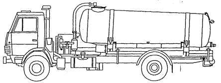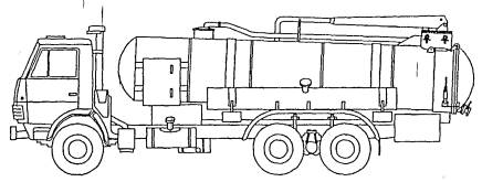 Агрегат AKH-6,6-43101 (шасси КАМАЗ-43101 6´6)Агрегат предназначен для сбора и транспортирования конденсата, нефти, нефтепродуктов и неагрессивных технологических жидкостей (кроме сжиженных углеводородных газов). Применяется для: - сбора нефти и нефтепродуктов из зачистных и заглубленных емкостей; - сбор нефтепродуктов с поверхности земли практически любой консистенции при аварийных проливах нефтепродуктов; - зачистки емкостей, имеющих малый поверхностный слой нефтепродуктов. Спецификация Модель..............................................AKН-6,6-43101 Вместимость цистерны, куб.м.............................6,6 Масса транспортируемой жидкости, кг..........6600 Способ заполнения цистерны...............вакуумный Допустимое разрежение в цистерне, МПа, кг/см.............................0,05 (0,5) Предельная высота всасывания жидкости (от оси задвижки), м...........................4,0 Количество обслуживающего персонала, чел.....1 Габаритные размеры, мм - длина................................................................7630 - ширина.............................................................2500 - высота...............................................................3200 Масса агрегата, кг.............................................9070 Максимальная скорость, км/час..........................80 Базовое шасси: Модель........................................КАМАЗ-43101 Двигатель: Модель............................................7403 (740.11) Тип.........................дизельный с турбонаддувом Максимальная мощность, л.с. (кВт), при 2600 (2200) об/мин.......260 (191), 240 (176) Изготовитель: ЗАО «Озониг-Лукойл» г. Октябрьский