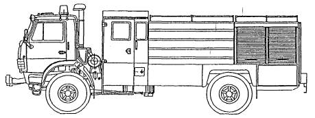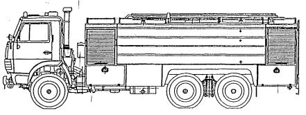 Автоцистерна пожарная АЦ-5-40 (шасси КАМАЗ-43101 6´6)Назначение: - тушение пожаров огнетушащими средствами; - доставка к месту пожара запаса огнетушащих веществ, пожарно-технического вооружения и боевого расчета; - подача воды н воздушно-механической пены низкой и средней кратности через напорные рукава, ручные стволы, пеногенераторы, лафетный ствол. Автоцистерна может быть использована как самостоятельная боевая единица с забором огнетушащих средств из емкости, открытого водоема или гидранта; подачи воздушно-механической пены с забором пенообразователя из штатного пенобака или постороннего резервуара, или как насосная станция при работе "в перекачку" с одной или несколькими автоцистернами. Спецификация Модель......................................................ЛЦ-5-40 Емкость цистерны, м3 (л).........................5 (5000) Емкость пенобака, м3 (л)........................0,35(350) Число мест боевого расчета.................................7 Тип насоса...............ПП-40УВ или НЦПК-40/100 Подача насоса, м3/с: нормальная ступень.........................................0,04 ступень высокого давления...........................0,004 Высота всасывания, м...........................................7 Тип лафетного ствола.......комбинированный с дистанционным управлением или ручной Производительность лафетного ствола, м3/с........................................................0,04 Транспортные габариты, м..................8,5´2,5´3,4 Полная масса, кг.............................................15600 Максимальная скорость, км/ч.............................90 Базовое шасси: Модель............................................КАМАЗ-43253 Двигатель: Модель...................................................7403 (740.11) Тип................................дизельный с турбонаддувом Максимальная мощность, л.с.(кВт), при 2600 (2200) об/мин..............260 (191), 240 (176) Изготовитель: АО «Пожтехника» г.Торжок