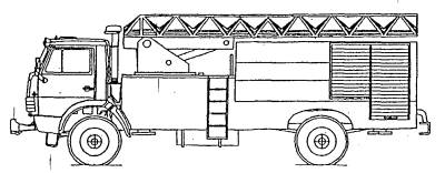 Автоцистерна пожарная с лестницей АЦЛ-3-40-17 (шасси КАМАЗ-43253 4´2)Автоцистерна с лестницей АЦЛ-3-40-17 предназначена для доставки к месту пожара боевого расчета, запаса воды, пенообразователя, ПТВ, проведения спасательных работ на высоте до 17 метров, тушения пожара через ручные лафетные стволы или съемный управляемый лафетный ствол на вершине лестницы. Модель представляет собой универсальную машину которую можно использовать в различных комбинациях как автоцистерну или автолестницу. К двигателю шасси через коробку отбора мощности подключены водяной и маслонасосы, которые могут включаться как вместе, так и раздельно. Для забора воды из водоема на машине установлен газоструйный вакуумный аппарат. Спецификация Масса полная, кг...........................................15200 Число мест для боевого расчета, чел.................3 Вместимость цистерны для воды, куб.м...........3 Вместимость пенобака, куб.м..........................0.3 Высота полностью выдвинутой лестницы, м.........................................................17 Рабочая нагрузка на вершину неприслоненной лестницы, м.........................160 Габаритные размеры, м: длина..................................................................7,7 ширина...............................................................2,5 высота................................................................3,0 Максимальная скорость, км/ч...........................80 Тип пожарного насоса.......................ПН-40УВ или МЦПК-40/100 Базовое шасси: Модель...........................................КАМАЗ-43253 или КАМАЗ-43101 Двигатель: Модель................................................7403 (740.11) Тип.............................дизельный с турбонаддувом Максимальная мощность, л.с. (кВт), при 2600 (2200) об/мин..........260 (191), 240 (176) Изготовитель: ОАО «Пожтехника» г.Торжок
