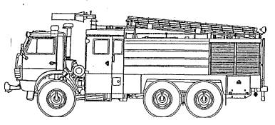 Аэродромный пожарный автомобиль АА-5,3/40-50/3 (шасси КАМАЗ-43101 6´6)Аэродромный пожарный автомобиль АА-5,3/40-50/3 предназначен для: - тушения пожаров огнетушащими средствами; - доставки к месту пожара запаса огнетушащих веществ, пожарно-технического вооружения и боевого расчета; - подачи воды и воздушно-механической пены низкой и средней кратности через напорные рукава, ручные стволы, пеногенераторы, лафетный ствол. Автоцистерна может быть использована как самостоятельная боевая единица с забором огнетушащих средств из емкости, открытого водоема или гидранта; подачи воздушно-механической пены с забором пенообразователя из штатного пенобака или постороннего резервуара или как насосная станция при работе "в перекачку" с одной или несколькими автоцистернами. Спецификация Модель...............................................АА-5,3/40-50/3 Емкость цистерны, м3 (л).............................5 (5000) Емкость пенобака, м1 (л).............................0,3(300) Число мест боевого расчета....................................3 Тип насоса.........................ПН-40УВ или НЦПН-40 Масса вывозимой углекислоты, кг......................50 Средство подачи углекислоты ........ствол-пробойник и раструб Количество рукавных катушек, шт.......................2 Длина и количество рукавов, м/шт..................20/2 Количество одновременно работающих ГПС-600, шт......................................6 Производительность лафетного ствола, л/с..............................................................40 Транспортные габариты, м...................8,3´2,5´3,4 Полная масса, кг.............................................15100 Максимальная скорость, км/ч.............................90 Базовое шасси: Модель.........................................КАМАЗ-43101 Двигатель: Модель............................................7403 (740.11) Тип.........................дизельный с турбонаддувом Максимальная мощность, л.с.(кВт), при 2600 (2200) об/мин......260 (191), 240 (176) Изготовитель: ОАО «Пожтехника» г.Торжок