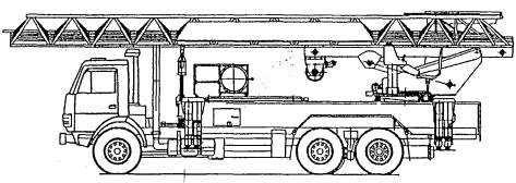 Автоподъемник АКП-35 (шасси КАМАЗ-53213 6´4)Телескопический автоподъемник АКП-35 предназначен для доставки боевого расчета к месту пожара и проведения работ на высоте до 35 метров. Два пульта управления, пропорциональное управление движениями, возможность подачи воды к лафетному стволу по водокоммуниканиям подъемника, поворотная люлька - все это служит для успешного выполнения работ в экстремальных условиях. Спецификация Модель.......................................................АКП-35 Высота подъема люльки, м...............................35 Максимальная грузоподъемность люльки, кг.........................................................300 Вылет стрелы, м..................................................19 Угол поворота влево и вправо, град...............360 Число мест для боевого расчета, чел.................3 Габаритные размеры, мм: длина..............................................................11000 ширина............................................................2500 высота.............................................................3500 Полная масса, кг...........................................19000 Максимальная транспортная скорость, км/ч.....................................................80 Базовое шасси: Модель.......КАМАЗ-53213 или КАМАЗ-53228 Двигатель: Модель................................................7403 (740.11) Тип.............................дизельный с турбонаддувом Максимальная мощность, л.с. (кВт), при 2600 (2200) об/мин...........260 (191), 240 (176) Изготовитель: ОАО «Пожтехника» г.Торжок