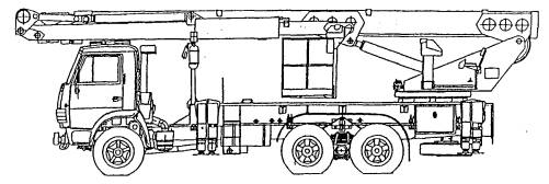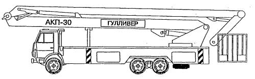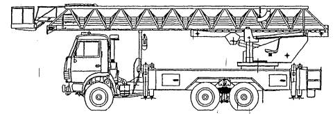 Автоподъемник коленчатый пожарный АКП-30 (шасси КАМАЗ-53213 6´4)Автоподъемник коленчатый пожарный ЛКП-30 предназначен для: - проведения восстановительных и монтажных работ на высоте до 30 метров; - проведения строительных работ, ремонта и обслуживания зданий, сооружений и устройств юродского и коммунального хозяйства; - ремонта и обслуживания мостов и причалов; - электроснабжения работ на высоте; - обслуживания линий электропередач, электроустановок, находящихся под напряжением до 10 кВт; - проведения спасательных работ но эвакуации людей и ценностей с высоты при чрезвычайных ситуациях. Спецификация Модель.....................................................АКП-30 Высота подъема люльки, м.............................30 Рабочий вылет люльки, м.............................18,5 Максимальная грузоподъемность люльки, кг.......................................................350 Полная масса, кг.........................................19500 Габаритные размеры, м длина...............................................................14,5 ширина..............................................................2,5 высота...............................................................3,7 Максимальная скорость, км/ч.........................80 Базовое шасси: Модель........................................КАМАЗ-53213 Двигатель: Модель...........................................7403 (740.11) Тип........................дизельный с турбонаддувом Максимальная мощность, л.с. (кВт) при 2600 (2000) об/мин......260 (191), 240 (176) Изготовитель: ОАО «Пожтехника» г. Торжок
