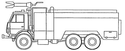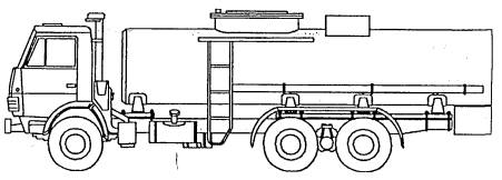 Автотопливозаправщик АТЗ-7.5 (шасси КАМАЗ-43101 6´6)Автотопливозаправщик предназначен для транспортирования, кратковременного хранения и механизированной заправки автотехники светлыми нефтепродуктами с плотностью не более 830 кг/м3 и рассчитан на эксплуатацию в тех же дорожно-климатических условиях, что и базовое шасси. Спецификация Модель...............................................................АГЗ-7.5 Номинальная вместимость цистерны, л...............7500 Полная масса (с топливом), кг............................15425 Объемный расход топлива через раздаточный крал, л/мин.........................................170 Глубина самовсасывания, м.....................................4,5 Насос, тип.....................................................1СВН-80А Производительность насосной установки, л/мин.....................................500 Время заполнения цистерны насосом, мин............15 Время опорожнения цистерны, мин своим насосом............................................................16 самотеком...................................................................20 Габаритные размеры, мм длина.......................................................................7980 ширина....................................................................2500 высота.....................................................................2900 Максимальная скорость, км/ч.....................................80 Базовый Тягач: Модель.....................................................КАМА343101 Двигатель: Модель.......................................................7403 (740.11) Тип....................................дизельный с турбонаддувом Максимальная мощность, л.с.(кВт), при 2600 (2200) об/мин...................260 (191 ),240( 176) Изготовитель: ОАО «Завод Строммашина» г.Челябинск