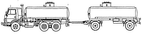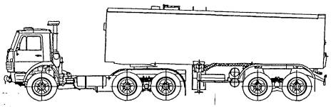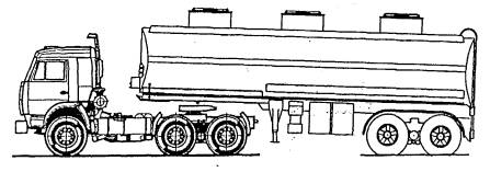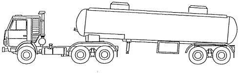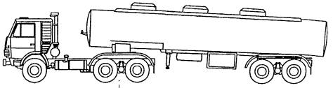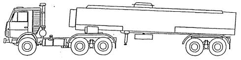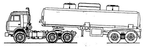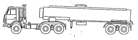 Автопоезд в составе автоцистерны и прицепа-цистерны 6606-8602 (шасси КАМАЗ-53215 6´4)Автопоезд в составе автоцистерны и прицепа-цистерны предназначен для транспортирования и кратковременного хранения светлых нефтепродуктов плотностью не более 830 кг/м3. Спецификация АВТОЦИСТЕРНА: Номинальная вместимость, л..........................10450 Время слива топлива, мин: - самотеком.............................................................30 - при помощи насоса.............................................30 Высота самовсасывания, м..................................6,5 Насос самовсасывающий, вихревой, одноступенчатый СВН-80А. Привод насоса - гидромотор типа ГМШ-32 Снаряженная масса а/цистерны, кг....................8800 Полная масса а/цистерны, кг...........................18225 ПРИЦЕП-ЦИСТЕРНА: Номинальная вместимость, л...........................11200 Снаряженная масса, кг.......................................3950 Полная масса, кг...............................................13580 Время слива топлива самотеком, мим...................35 Масса снаряженного автопоезда, кг...............12750 Полная масса автопоезда, кг............................31805 Максимальная скорость автопоезда, км/час..........80 Базовое шасси: Модель...............................................КАМАЗ-53215 Двигатель: Модель..................................................7403 (740.11) Тип..............................дизельный с турбонаддувом Максимальная мощность, л.с. (кВт), при 2600 (2200) об/мин...............260 (191), 240 (176) Изготовитель: ОАО «НЕФАЗ» г.Нефтекамск