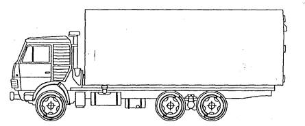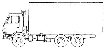 Автофургон К 43101 (шасси КАМАЗ-43101 6´6)Кузов - фургон автомобильный тина К4310 предназначен для размещения, монтажа и эксплуатации в нем оборудования. Автомобильный кузов-фургон предназначен для эксплуатации в районах с умеренным климатом от -40°С до +50°С Спецификация Модель.....................................................К43101 Грузоподъемность, кг.................................5750 Масса снаряженного кузова-фургона, кг......................................1520 Масса автомобильного кузова-фургона, кг......................................9040 Полная масса, кг........................................15000 Площадь пола (с нишами, м2)...................12,24 Внутренний объем кузова-фургона, куб.м................................20,17 Габаритные размеры, мм........8390´2500´3380 Электропитание напряжением (ОВ65; ФВУЛ), В......................24 Максимальная скорость, км/ч.........................80 Базовое шасси: Модель...........................................КАМАЗ-43101 Двигатель: Модель..............................................7403 (740.11) Тип...........................дизельный с турбонаддувом Максимальная мощность, л.с. (кВт), при 2600 (2200) об/мин. ......260 (191), 240 (176) Изготовитель: ОАО «Комбинат автомобильных фургонов» г.Шумерля