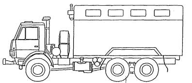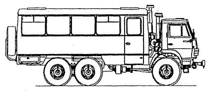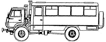 Автобус специальный 42111 (шасси КАМАЗ-4326 4´4)Автобус специальный мод.42111 - закрытый, однодверный кузов фургонного типа, металлический с термоизоляцией. Сиденья - полумягкие, травмобезопасные. Радиооборудование - радиоприемник, переговорное устройство. Система отопления: - основная - от автономного жидкостного подогревателя; - аварийная - с подключением жидкостной системы охлаждения двигателя к основной системе отопления. Вентиляция естественная - через окна с форточками н люки крыши. Спецификация Модель.....................................................................42111 Число мест в салоне (включая два места в кабине водителя).......................................................26 Масса снаряженного автобуса, кг.........................8750 Полная масса автобуса, кг....................................11130 Нагрузка через шины переднего моста, кгс..........5500 Нагрузка через тины заднего моста, кгс................5630 Габаритные размеры, мм: длина.........................................................................8115 ширина......................................................................2500 высота........................................................................3165 Максимальная скорость, км/ч....................................85 Базовое шасси: Модель.....................:.;.............................КАМАЗ-4326 Двигатель: Модель...........................................................7403 (740.11) Тип........................................дизельный с турбонаддувом Максимальная мощность, л.с.(кВт), при 2600 (2200) об/мин......................260 (191), 240 (176) Изготовитель: ОАО «НефАЗ» г.Нефтекамск