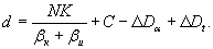 N - число малых базисов (баз), использованных для определения расстояния при определении угла β, причем β = βк + βи. где βк - постоянный угол, образуемый постоянным клином, βи - переменный угол, образуемый компенсатором (может быть положительным и отрицательным). При вычислении горизонтального проложения d необходимо учесть поправку ∆Dt за температуру и поправку ∆Dα за наклон линии к горизонту, тогда Поправка ∆Dα определяется по формуле