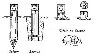 Рис. 28. Знаки закрепления вершин теодолитных ходов в лесу.