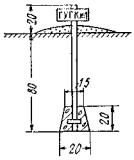 Рис. 29. Знак закрепления вершин теодолитных ходов в безлесной местности. В населенных пунктах знаки устанавливаются вровень с землей; как правило, это забитые в землю трубы или штыри (рис. 30).