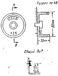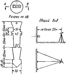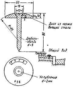 При закреплении теодолитных ходов предпочтительнее стенные знаки в виде стакана диаметром 60 и высотой 30 мм (рис. 34) из малоуглеродистой стали, «пристреливаемые» к частям сооружений при помощи дюбеля.