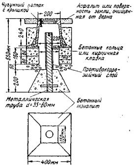 Рис. 30. Знак закрепления вершин теодолитных ходов в населенных пунктах. Весьма удобно закрепление пунктов дисковыми знаками (рис. 31), прикрепляемыми к тротуару при помощи дюбеля монтажным пистолетом.