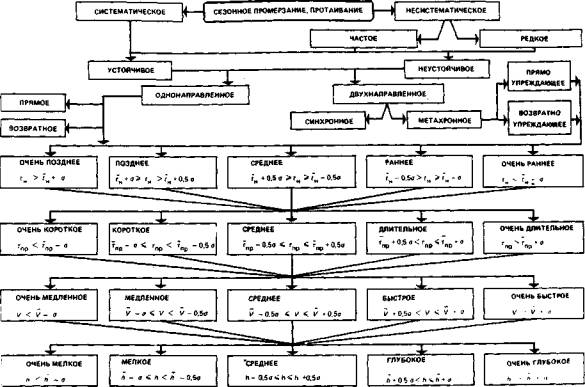 грунтов в Западной Сибири 2.2. По характеру проявления в многолетнем периоде сезонное промерзание (протаивание) разделяется на: систематическое, проявляющееся ежегодно в течение многолетнего репрезентативного (см. п. 1.6) или требуемого при освоении территории периода; несистематическое, проявляющееся не ежегодно. Оно делится на: частое, если средняя длительность перерывов в проявлении процесса за репрезентативный или требуемый период соизмерима или меньше средней длительности периодов с его ежегодным проявлением, и редкое, если средняя длительность перерывов в проявлении процесса больше средней длительности периодов с ежегодным его проявлением за тот же период. 2.3. По устойчивости в течение холодного (теплого) периода года эти процессы бывают: устойчивыми и неустойчивыми. Устойчивым называется сезонное промерзание (протаивание), в течение холодного (теплого) периода не сменяющееся полным протаиванием (промерзанием) промерзшего (протаявшего) горизонта грунтов. Неустойчивым называется сезонное промерзание (протаивание), в течение холодного (теплого) периода года сменяющееся полным протаиванием (промерзанием) промерзшего (протаявшего) горизонта грунтов. 2.4. По направленности относительно дневной поверхности выделяются две модификации сезонного промерзания и протаивания: прямое, направленное от дневной поверхности (или дна водоема, водотока) вглубь грунтов, и возвратное, направленное от поверхности грунтов, подстилающих сезонно-талые и сезонно-мерзлые, к дневной поверхности или дну водоема, водотока. В природе проявляется: однонаправленное сезонное промерзание (протаивание) - прямое или возвратное, и двунаправленное при совокупном проявлении прямого и возвратного промерзания (протаивания). 2.5. Двунаправленное сезонное промерзание (протаивание) бывает: синхронным, если прямое и возвратное промерзание (протаивание) начинаются одновременно, и метахронным, если прямое и возвратное промерзание (протаивание) начинаются неодновременно. Метахронное сезонное промерзание (протаивание) разделяется на: прямоупреждающее, если прямое промерзание (протаивание) начинается раньше возвратного, и возвратноупреждающее, если раньше начинается возвратное сезонное промерзание (протаивание). 2.6. Регулируя качественные показатели этих процессов можно: сделать их проявление несистематическим вместо систематического и наоборот; изменить период проявления устойчивого и неустойчивого сезонного промерзания и протаивания; исключить или обусловить возвратное промерзание или протаивание; изменить соотношение дат начала прямого и возвратного промерзания или протаивания. На рис. 4 дана схема изменений качественных градаций сезонного промерзания грунтов и их реальная возможность.
