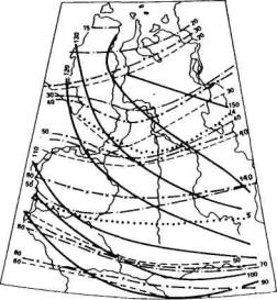 Рис. 10. Карта расчетных средних многолетних глубин (см) сезонного протаивания торфа (1), суглинка с влажностью 35% при моховом покрове (2) и суглинка с влажностью 30% на задернованных участках (3) РЕГУЛИРОВАНИЕ ГЛУБИНЫ СЕЗОННОГО ПРОМЕРЗАНИЯ И ПРОТАИВАНИЯ ГРУНТОВ2.58. Глубина прямого сезонного промерзания и протаивания грунтов - единственный количественный показатель этих процессов, более или менее детально изученные к настоящему времени. Разработаны расчетные методы определения и прогноза изменения этого показателя при нарушении природных условий [11, 12, 22, 21, 17]. Они нередко называются методами расчета и прогноза не глубины прямого сезонного промерзания и протаивания грунтов, а мощности сезонно-талого (СТС) и сезонно-мерзлого (CMC) слоя. Расчетные методы, применение гидроинтегратора и ЭВМ позволяют определить именно глубину прямого сезонного протаивания в области близко залегающих вечномерзлых грунтов, если при этом не учитывается осадка мерзлых грунтов при сезонном протаивании. Вне этой области данными методами определяют глубину прямого сезонного промерзания грунтов, а не мощность CMC, если не учитывается величина их пучения при промерзании. 2.59. Глубина сезонного промерзания соответствует мощности горизонта талых грунтов, промерзающих за холодный период года. В настоящее время вне области вечномерзлых грунтов она неоправданно отождествляется с мощностью сезонно-мерзлого слоя (CMC), превосходящей глубину сезонного промерзания на величину пучения грунтов при промерзании. Мощность сезонно-мерзлого слоя соответствует глубине сезонного протаивания в следующий теплый период года, если не сохраняется остаточного горизонта сезонно-мерзлых грунтов, часто называемого перелетком. Глубина сезонного промерзания талых грунтов здесь в любой год равна разнице между мощностью сезонно-мерзлого слоя и величиной криогенного пучения слагающих его грунтов. При освоении территории без вечномерзлых грунтов до сих пор учитывается не глубина сезонного промерзания (СНиП 2.02.01-83), а мощность сезонно-мерзлого слоя. 2.60. Глубина сезонного протаивания соответствует мощности горизонта мерзлых грунтов, протаивающих за теплый период как в области вечномерзлых грунтов, так и вне ее. В настоящее время в области вечномерзлых грунтов она неоправданно отождествляется с мощностью сезонно-талого слоя (СТС), которая меньше глубины сезонного протаивания грунтов на величину их осадки при протаивании. Мощность сезонно-талого слоя здесь соответствует возможной в следующий холодный период года глубине сезонного промерзания грунтов, если не сохраняется остаточного горизонта сезонно-талых грунтов. При освоении области близко залегающих вечномерзлых грунтов до сих пор учитывается не глубина сезонного протаивания (СНиП П-18-76, [18]. Нормы производства инженерно-геологических изысканий для строительства на вечномерзлых грунтах РСН 31-83), а мощность сезонно-талого слоя или глубина сезонного промерзания грунтов. 2.61. Различают несколько видов глубины сезонного промерзания и протаивания грунтов, определяемых по-разному. Практически до сих пор в области вечномерзлых грунтов вместо любого вида глубины сезонного протаивания используются сведения о том же виде мощности сезонно-талого слоя (см. п. 2.60), а вне этой области - данные о том же виде мощности сезонно-мерзлого