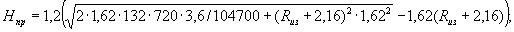 По результатам расчетов строим график зависимости Нпр и Нот от Rиз (рис. 22). Точке пересечения кривых соответствует искомое значение Rиз. В данном случае Нпр = Нот = 1,44 м при Rиз = 0,2 м2·°С/Вт, т.е. при термическом сопротивлении теплоизоляции больше 0,2 м2·°С/Вт будет происходить многолетнее промерзание отложений.
