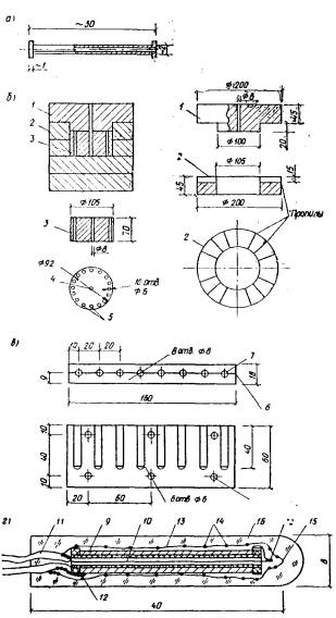инерционного термометра ПРИЛОЖЕНИЕ 16ИЗГОТОВЛЕНИЕ И ТАРИРОВКА ЭЛЕКТРИЧЕСКИХ ТЕРМОМЕТРОВ СОПРОТИВЛЕНИЯ (ЭТС), ИЗГОТОВЛЕНИЕ ГИРЛЯНД1. Изготовление серии датчиков. ЭТС (рис. 7) изготовляются из провода ПЭЛ-0,05 мы. Для исключения самоиндукции катушку наматывают бифилярно. Бифиляр получают при наматывании на каркас одновременно двух проводов, которые сматывают с двух катушек, т. е. наматывают в две нитки. Оба конца припаиваются друг к другу и закрепляются на каркасе капроновой ниткой. Каркас выполняется из оболочки любого провода с наружным диаметром 2 мм и длиной 30 мм, из которого удален проводник. На края каркаса надеваются кольца из оболочки провода большего диаметра, внутренний диаметр которых 2 мм. Места соединений оклеиваются клеем (БФ).