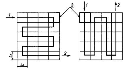 Каждый элемент поверхности должен быть определен таким образом, чтобы он мог быть легко и удобно просканирован с постоянной скоростью и равномерной плотностью линий сканирования, при сохранении положения оси акустического зонда перпендикулярно к локальной поверхности. Поворот в конце линии сканирования может вызвать ошибку при усреднении по поверхности, переоценке вклада от ребра (края поверхности). Необходимо применять меры для поддержания постоянной скорости сканирования на всей траектории сканирования.