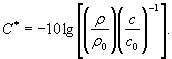 Полагая n = -1 как среднее из значений n для большинства структурных и аэродинамических источников звука, получается следующее равенство как первый шаг коррекции для нормализованного значения уровня звуковой мощности: