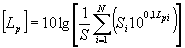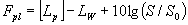 где LW- уровень полной звуковой мощности работающего источника [согласно равенствам (8) и (9)]; LW,abs - уровень поглощенной звуковой мощности при выключенном источнике.