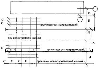А - размер колеи крана, м. Б - расстояние от проектной оси здания до оси направляющей (рельса) с учетом выступающих частей крана, здания и других предметов, м. Д - расстояние от оси направляющей до оси водоотводной канавы, м. С - расстояние между точками отбора проб фунта, м. Е - расстояние от проектной оси здания до начала кранового пути, м. Исполнитель: __________________ должность Ф.И.О. Удостоверение № _______________ кем выдано «___»_______________________г. дата выдачи удостоверения (обязательное приложение № 2 к акту сдачи-приемки земляного полотна) К акту от __________________ № ______________ Схема плана земляного полотна