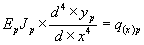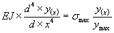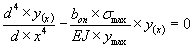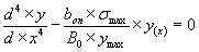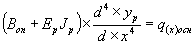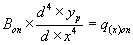 Зная напряжения в грунтовом основании, по линии контакта балки определим зависимость интенсивности отпора q(x) и величиной деформации y(x) где bоп - ширина балки. Приняв начало координат в точке приложения силы и рассматривая изгиб балки от действия интенсивности отпора q(x) с учетом уравнения (11), уравнение четвертого порядка изогнутой оси балки примет вид