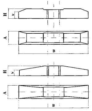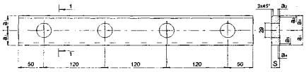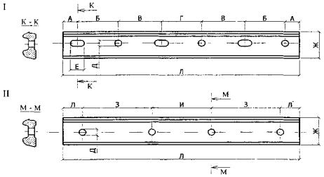 Рис. П.7.3. Стыковые двухголовые накладки для направляющих типа Р. а - шестидырные; б - четырехдырные. Таблица П.7.2. Размеры стыковых двухголовых накладок, мм