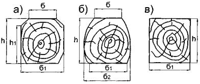 Рис. П.7.6. Поперечные сечения деревянной полушпалы: а - обрезных тип IA; IIА; IIIА; б - необрезных тип IБ; IIБ; IIIБ; в - из бруса. Таблица П.7.4 Размеры поперечного сечения деревянных полушпал, мм