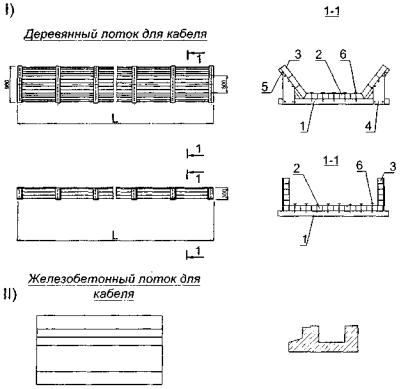 Рис. П.8.2. Лоток для укладки кабеля. а - из древесины; б - железобетонные лотки для кранов с троллейной подводкой электропитания