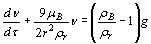 где mr - масса дискретного объема газа; X-высота подъема газового объема; FА - Архимедова сила, FА = 4/3pr3 r вg; r- радиус дискретного объема; rв - плотность воздуха; g - ускорение свободного падения; FТР - сила трения газового шара о воздух, по формуле Стокса: FТР = 6pmвrn; mв - динамическая вязкость воздуха; n - скорость распространения газа; Р- вес дискретного объема газа, Р= 4/3pr3 r 1g; rr - плотность газа. Учитывая незначительную энергию свободного восхождения потока газа в атмосфере окружающего воздуха при небольшой высоте помещения (3-5 м), для практических целей вполне доступно пренебрежение эжекций воздуха потоком газа. Преобразуя уравнение (1), получаем дифференциальное уравнение для скорости движения дискретного объема газа