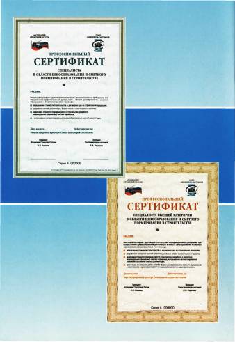 Наличие у специалиста профессионального сертификата свидетельствует не только об объеме специальных знаний, умении и опыте специалиста, но и его самостоятельном и творческом отношении к выполнению и применению сметных расчетов стоимости строительства.
