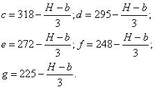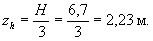 h1 = 4,27 - 2,7 = 1,57 м; h = 6,7 м; b = 4,27 м;