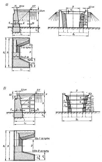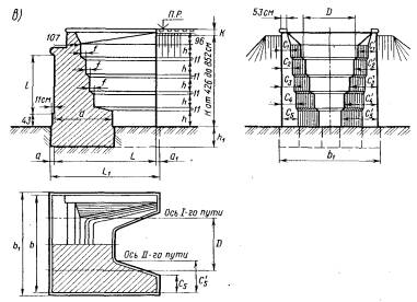 РОССИЙСКОЙ ФЕДЕРАЦИИ РУКОВОДСТВО по определению грузоподъемности опор железнодорожных мостов МОСКВА «ТРАНСПОРТ» 1995 Содержание Приведены основные положения, нормы и методические указания по определению грузоподъемности опор эксплуатируемых железнодорожных мостов. Изложенные нормы и методы расчета предназначены для классификации массивных мостовых опор, сооруженных из монолитного или сборного бетона, железобетона, каменной или кирпичной кладки, но могут быть распространены и на сквозные железобетонные или металлические мостовые опоры. Расчетные формулы выведены на основе действующих корм расчета инженерных сооружений по предельным состояниям. Руководство составили В.В. Пименов и А.Ф. Лунин (Гипротранспуть). В состав Руководства включены (в виде Приложений) систематизированные данные по основным типам мостовых опор, металлических и железобетонных пролетных строений, составленные Лобановым А. Е. (MИИТ) и Антиповым А.С. (ВНИИЖТ). ПРЕДИСЛОВИЕНастоящее Руководство по определению грузоподъемности опор эксплуатируемых железнодорожных мостов разработано на основе принципа классификации и методики расчета сооружений по предельным состояниям первой группы с сохранением единичной эталонной нагрузки по схеме Н1. Использование общего принципа классификации и эталонной нагрузки Н1 позволяет сравнивать классы опор с классами подвижного состава определяемыми в соответствии с Руководством по пропуску подвижного состава по железнодорожным мостам. Расчетные сопротивления кладки мостовых опор, грунтовых оснований и другие нормативы, заложенные в Руководстве, приняты на основе изучения и обобщения многолетнего опыта эксплуатации мостовых опор и научно-исследовательских работ, проведенных МИИТом, ЛИИЖТом и др. В Руководстве обобщены и обоснованы особенности классификации мостовых опор проявившиеся в наибольшей степени при расчете грузоподъемности устоев. Основные положения и принципиальные вопросы методики классификации мостовых опор рассмотрены комиссией инженерных сооружений и строительства научно-технического совета МПС. Замечания, отзывы и вопросы, возникающие при классификации мостовых опор по настоящему Руководству, следует направлять в отдел инженерных сооружений Главного управления пути МПС или в институт Гипротранспуть. Зам. начальника Главного управления пути МПС А.В. Бушин 1. ОБЩИЕ УКАЗАНИЯОсновные положения классификации опор по грузоподъемности1.1. В соответствии с требованиями Правил технической эксплуатации железных дорог Российской Федерации (п. 3.11) все мосты должны быть проклассифицированы по грузоподъемности. Опоры мостов классифицируют с целью определения условий пропуска по ним различных подвижных нагрузок и решения вопросов, связанных с реконструкцией опор, их усилением, ремонтом или заменой опирающихся на них пролетных строений. 1.2. Классификацию опор осуществляют на основании Основных положений по расчету надежности строительных конструкций и оснований (ГОСТ 27751-88) по предельным состояниям первой группы. Классификация подвижных нагрузок по воздействию их на опоры выполняется на основании Руководства по определению грузоподъемности металлических пролетных строений железнодорожных мостов и Руководства по пропуску подвижного состава по железнодорожным мостам с учетом дина