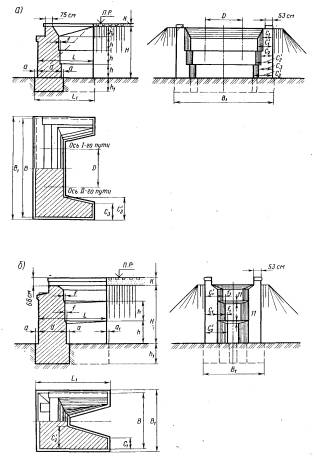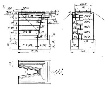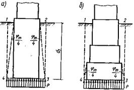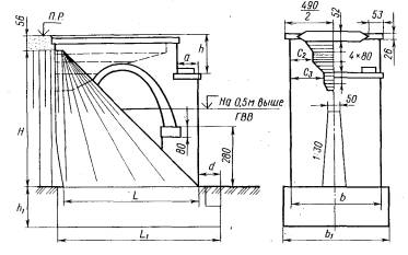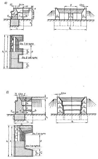 Остальные буквенные обозначения показаны на рис. 5.2 или пояснены выше в разделе 5.1. В расчетах устоев на максимальное давление при высоте насыпи свыше 12 м следует учитывать дополнительное вертикальное давление на грунтовое основание от веса примыкающей части подходной насыпи, определяемое согласно приложения 27 к СНиП 2.05.03-84; величину этого давления следует вычитать из расчетного сопротивления R1, определяемого по приложению 4. Расчет устоев по эксцентриситету положения равнодействующей нагрузок5.3. Схема