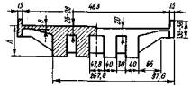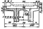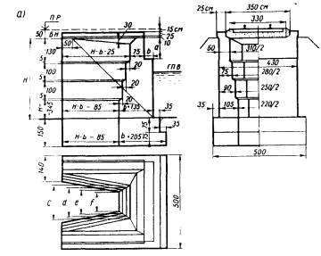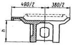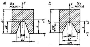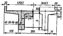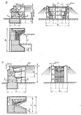е0 - эксцентриситет приложения равнодействующей относительно центра тяжести; Мo; Му - моменты соответственно опрокидывающих и удерживающих сил относительно оси возможного поворота опоры; ту - коэффициент условий работы при проверке устойчивости на сдвиг и опрокидывание (см. п. 3.20); nу - коэффициент надежности при проверке устойчивости (см. п. 3.18); Nc; Nу - соответственно сдвигающие горизонтальные нагрузки и удерживающие силы при расчете опор на сдвиг по грунту основания; f - коэффициент трения кладки по поверхности грунта (см. п. 2.5). 1.11. Используя исходные уравнения предельных состояний, вычисляют допускаемые временные вертикальные нагрузки k; по среднему давлению по максимальному давлению по устойчивости против опрокидывания по устойчивости против сдвига по положению равнодействующей находят относительный эксцентриситет ek - доля вертикальной нагрузки от подвижного состава, передающаяся на многопутную опору (см. п. 3.11); пk - коэффициент надежности к временным нагрузкам (см. табл. 3.3); hk - коэффициент сочетания временных нагрузок (см. табл. 3.4); W - площадь линии влияния усилий. На основании приведенных общих формул в соответствующих разделах Руководства используются частные формулы, учитывающие конкретные условия расчета промежуточных опор и устоев. Геометрические характеристики сечений опор1.12. Геометрические характеристики рассматриваемых сечений опор принимаются по фактическим размерам поперечных сечений с учетом ослабления их трещинами, вывалами камней и другими разрушениями и повреждениями. 1.13. При облицовке опор камнем твердых пород геометрические характеристики сечений следует определять по наружным контурам облицовки, а расчетные сопротивления кладки принимать по материалу ядра кладки без учета разницы модулей упругости камней облицовки и ядра кладки. Формулы для подсчета геометрических характеристик (площадей поперечного сечения, моментов инерции, моментов сопротивления, положения центров тяжести сечения) для наиболее характерных сечений устоев и промежуточных опор приведены в приложении 2. 1.14. Грузоподъемность опор, пораженных сквозными вертикальными трещинами) следует определять с учетом наличия таких трещин, при этом геометрические характеристики расчетных сечений необходимо рассчитывать для отдельных столбчатых массивов (см. п. 7 - Учет дефектов опор). 2. РАСЧЕТНЫЕ СОПРОТИВЛЕНИЯ КЛАДКИ И УСЛОВНЫЕ СОПРОТИВЛЕНИЯ ГРУНТОВ В ОСНОВАНИИ ФУНДАМЕНТОВ МОСТОВЫХ ОПОР2.1. Расчетные сопротивления кладки мостовых опор, расположенных в умеренной климатической зоне принимаются по табл. 2.1 при удовлетворительном состоянии кладки без выщелачивания, шелушения, размораживания и др. дефектов. Значения расчетных сопротивлений и коэффициентов условий работы, приведенные в табл. 2.1, соответствуют надземным частям опор; для подземных частей опор расчетные сопротивления кладки принимаются с повышающим коэффициентом 1,1, а для зоны переменного уровня воды - с понижающим коэффициентом 0,9. Таблица 2.1. Расчетные сопротивления кладки мостовых опор по прочности на сжатие и коэффициенты условий ее работы