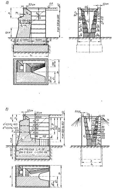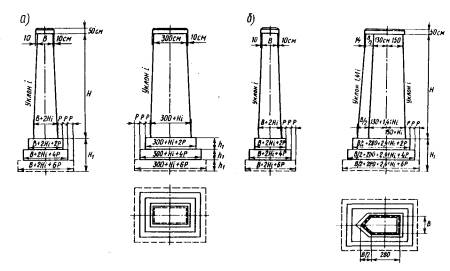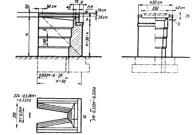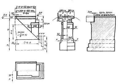 В приведенных и последующих формулах: NП, NК - вертикальные усилия соответственно от постоянных и временных (допускаемых) нагрузок; MП, MК - моменты в сечениях соответственно от постоянных нагрузок и временных вертикальных и горизонтальных воздействий; nRA - несущая способность сечения; m - коэффициент условий работы (см. п. 3.19); n - коэффициент надежности по назначению (см. п. 3.18); R - расчетное сопротивление кладки или несущая способность грунта (см. гл. 2); А - рабочая площадь поперечного сечения; W - момент сопротивления для наиболее нагруженной грани;