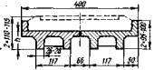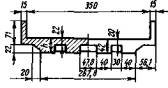 L1, L2 - полные длины пролетных строений. Остальные буквенные обозначения те же, что и в расчетах по среднему давлению (см. п. 4.1). Грузоподъемность опор по максимальному давлению следует определять при трех комбинациях временных нагрузок, приведенных в табл. 3.4, принимая их с соответствующими коэффициентами сочетаний hk. В формулу (4.6) вводят только те нагрузки, которые входят в рассматриваемую комбинацию. В расчетах на прочность кладки и по несущей способности грунтов основания коэффициент надежности по назначению п принимают таким же, как и в расчетах по среднему давлению (см. п. 4.1). Коэффициент условий работы кладки т берут по табл. 2.1, а по грунту основания принимают в соответствии с п. 3.19. Расчет в поперечном направлении Временной вертикальной нагрузкой по схеме загружения промежуточной опоры в поперечном направлении загружают оба пролета (рис. 4.3). Величину допускаемой временной вертикальной нагрузки вычисляют по той же формуле (1.11), что и для расчета в продольном направлении. Применительно к расчету опоры в поперечном направлении значения моментов и площадей линии влияния подсчитывают по следующим формулам: где zc - плечо центробежной силы с0.