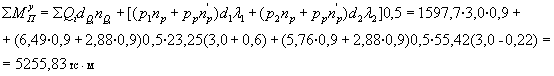 = 62,2 - 9,2 + 72,37 + 0,54 = 125,9 тс·м.