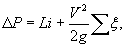 5.2.10 Потери давления ΔР, Па, на участке водопроводной сети следует определять по формуле где L - расчетная длина участка трубопровода, м; i, V - то же, что в формуле (1); g - ускорение свободного падения, м/с2; Σξ - сумма коэффициентов местных сопротивлений стыковых соединений, соединительных частей, арматуры, принимаемых по паспорту заводов-изготовителей либо по данным аналогичных проектируемых систем; приближенные значения ξ следует принимать по приложению Б. 5.2.11 Гидравлический расчет сетей внутреннего трубопровода горячего водоснабжения следует проводить на расчетный расход горячей воды с учетом циркуляционного расхода в соответствии с 8.1 и 8.2 СНиП 2.04.01. 5.2.12 Теплоснабжение следует проектировать в соответствии с требованиями СНиП 2.04.05, гидравлический расчет внутреннего трубопровода отопления следует производить по максимальному секундному расходу воды. 5.2.13 Гидравлический расчет системы внутреннего теплоснабжения начинают с участка трубопровода, потеря давления на котором самая большая. Гидравлический расчет производят в следующей последовательности: - выбирают диаметры труб и вычисляют потери давления на отдельных участках трубопровода; - вычисляют потери давления, вызванные регулирующими вентилями, находящимися в разных линиях трубопровода; - вычисляют величины потерь давления, вызванные отдельными вентилями отопительных приборов, находящимися на одной линии трубопровода; - на основе величин потерь давления определяют параметры для регулирующих вентилей и для вентилей отопительных приборов; - определяют регулирующий вентиль автоматических установок; - на основе учета потерь давления сети и потока циркуляционной воды по номограмме определяют мощность циркуляционного насоса. 5.2.14 Падение давления ΔР, Па, в системе отопления следует определять по формуле ΔР = RL + Z+ ΔРмест, (4) где R - удельная потеря давления на 1 м длины, Па/м; L - то же, что в формуле (3); Z - потеря давления в местных сопротивлениях, Па; ΔРмест - падение давления, вызванное отдельной установкой (в том числе, регулирующим вентилем). Па, 5.2.15 Потери давления по длине R, Па/м, следует определять по формуле