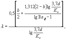 где b - число подобия режимов течения воды; d - тоже, что в формуле (1); Кэ - коэффициент эквивалентной (равномерно-зернистой) шероховатости, м; Rеф - число Рейнольдса фактическое. Фактическое число Рейнольдса Rеф следует определять по формуле