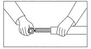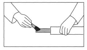 Рисунок 2 - Обработка конца трубы Металлическими щетками производят очистку конца трубы и раструба от загрязнений и зачистку наружной поверхности гладкого конца и внутренней поверхности раструба до металлического блеска. Затем на гладкий конец трубы, как указано на рисунке 3, наносят флюс.