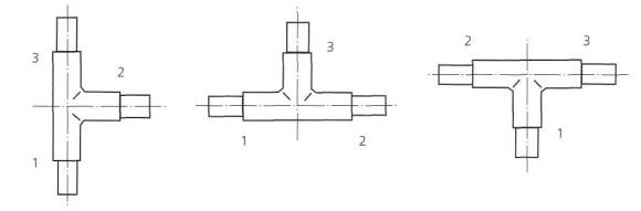 Рисунок 6 - Очередность пайки при различном пространственном расположении тройника: вертикальное (слева), горизонтальное с ответвлением вверх (посередине), горизонтальное с ответвлением вниз (справа) Очередность пайки следует соблюдать для обеспечения первоначального прогрева нижних паяемых деталей, затем - верхних деталей с тем, чтобы восходящее тепло последующего нагрева не расплавляло и не влияло на качество соединения, полученного предыдущей пайкой. Полученное соединение зачищают от излишних продуктов пайки (рисунок 7).