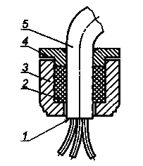 4 - зажимное кольцо с изогнутой кромкой; 5 - кабель
