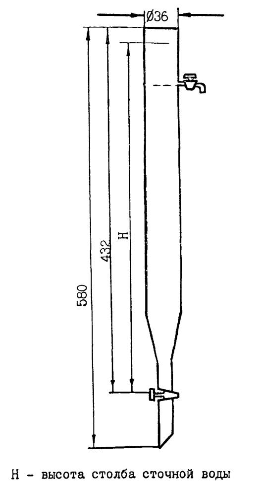 Черт. 1. Цилиндры Спильнера 2.3. Подготовка к анализу 2.3.1. Используя в качестве экстрагента толуол, построить калибровочный график содержания нефти в сточной воде по ОСТ 39-133-81. 2.3.2. Определить характеристические параметры исследуемой пробы сточной воды для константы "К" уравнения Стокса
